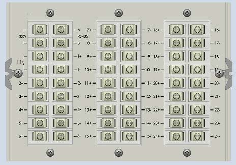 1+ (1-) ~ 24+ (24-): thiết bị đầu cuối đầu vào của bộ báo hiệu tín hiệu pin cắt