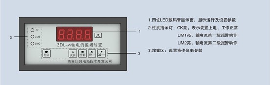 Thiết bị giám sát dòng trục ZDL-M sử dụng máy vi tính đơn chip hiệu suất cao làm thành phần điều khiển lõi để tạo thành bộ điều khiển và sử dụng máy biến áp hình vòng rỗng làm cảm biến dòng trục để theo dõi sự thay đổi dòng trục do trục lớn của bộ máy phát thủy điện. Máy vi tính đơn chip theo dõi giá trị thay đổi của cảm biến dòng trục trong thời gian thực. Giá trị này có mối quan hệ tuyến tính với dòng trục lớn. Sau khi lọc và xử lý chuyển đổi số, xác nhận rằng dòng trục vượt quá giá trị đặt và thiết bị giám sát dòng trục phát ra tín hiệu cảnh báo thứ cấp. Thiết bị sử dụng đèn LED bốn đoạn gồm bốn chữ số làm đơn vị hiển thị và cài đặt tham số và hiển thị thời gian thực rõ ràng và trực quan. Đồng thời, thiết bị giám sát dòng trục ZDL-M có thể phát tín hiệu tương tự 4 ~ 20mA tiêu chuẩn tương ứng với dòng trục (0 ~ 5A) để đáp ứng các yêu cầu đo của hệ thống giám sát máy tính.