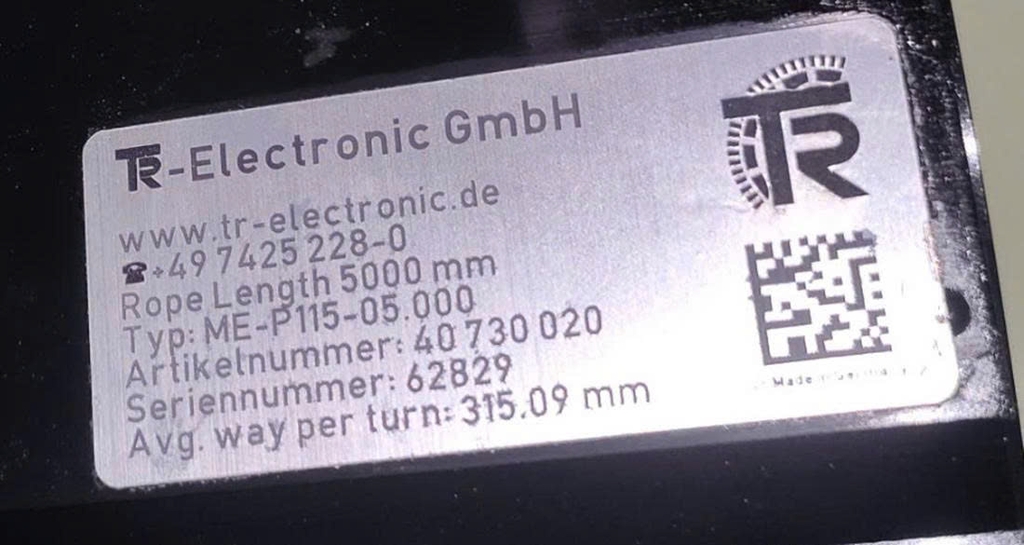 Encoder hanger OH "ME-P115-05.000 Rope Length 5000mm Avg.way per turn 315.09" TR Electronic GmbH
