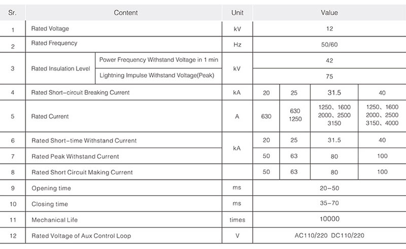 Máy cắt chân không ZN63 (VS1) —12 phù hợp với hệ thống điện xoay chiều ba pha 50Hz và điện áp danh định từ 3,6kV đến 12kV