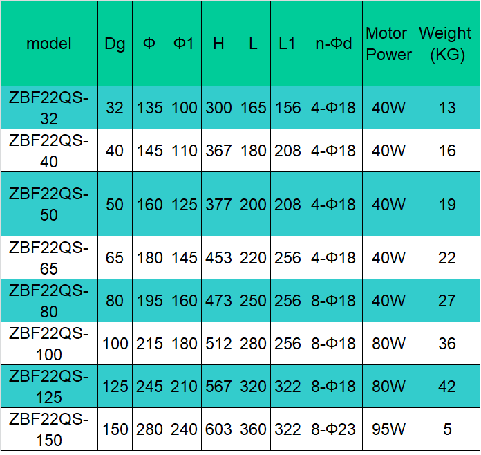 Model: ZBF22QS-32, ZBF22QS-40, ZBF22QS-50, ZBF22QS-65, ZBF22QS-80, ZBF22QS-100, ZBF22QS-125, ZBF22QS-150