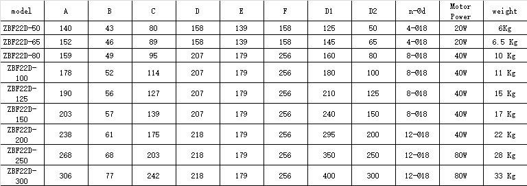 Mã sản phẩm: ZBF22D-50, ZBF22D-65, ZBF22D-80, ZBF22D-100, ZBF22D-125, ZBF22D-150, ZBF22D-200, ZBF22D-250, ZBF22D-300